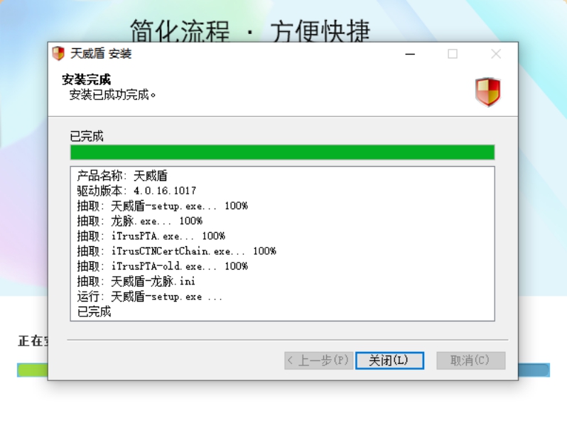 6、程序自动安装第三方“天威盾”工具包,如下图: