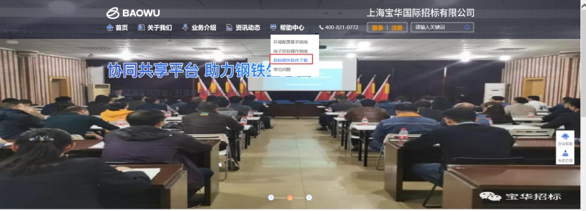 2、鼠标选择“帮助中心”打开下拉功能列表点击“ 投标相关软件下载 ”进入驱动下载页面 。