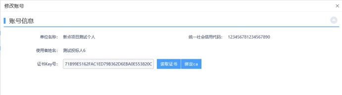 2.2.2 进入CA激活页,然后点击“修改信息”按钮进入CA绑定页面: