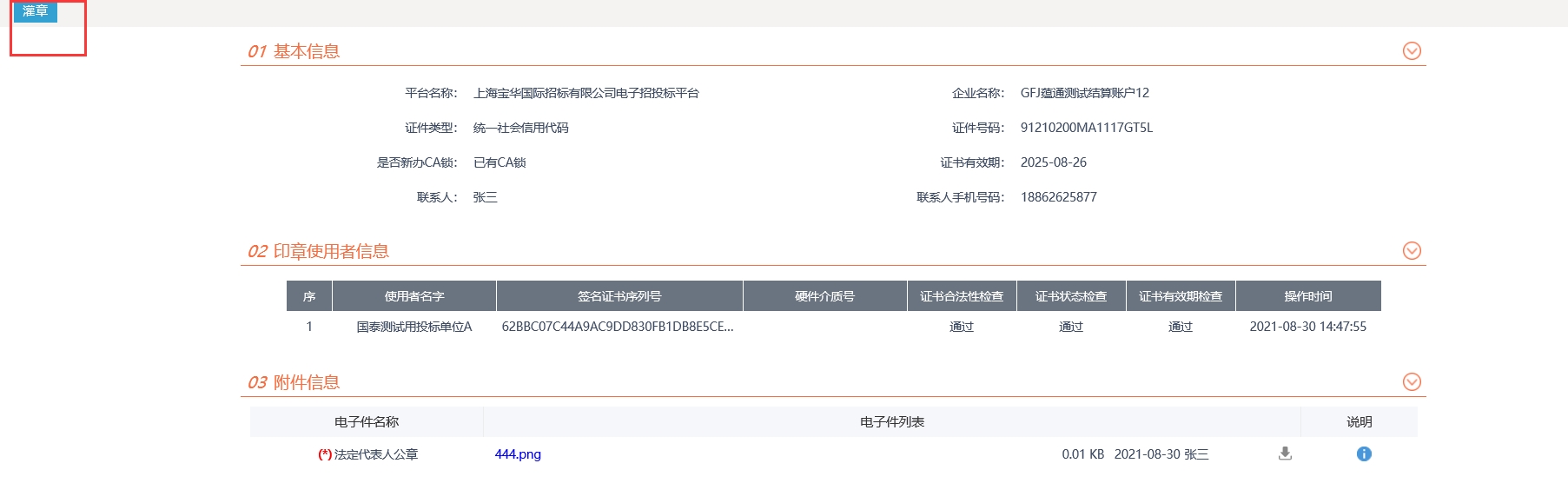 按钮生成法定代表人公章电子件。,完成进行信息提交。
