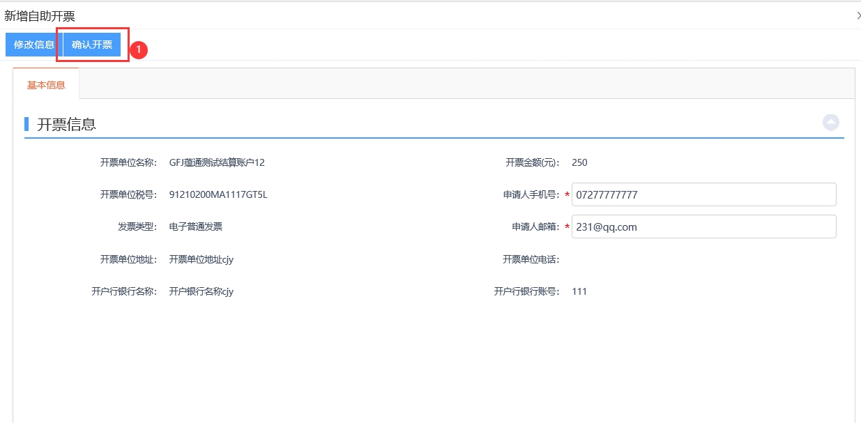 5.1 支付完成后可以选择自助开票进行电子发票开票申请。操作流程如下: