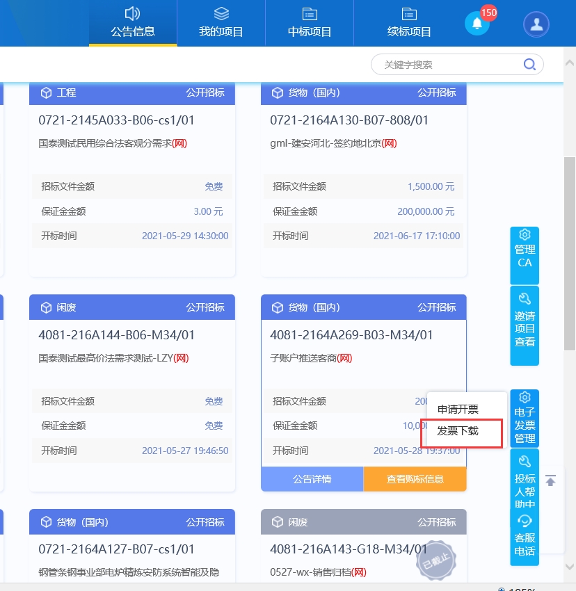 * 注意:注意必须使用续签后的 CA证书重新加密投标文件后在线递交,否则无法解密!