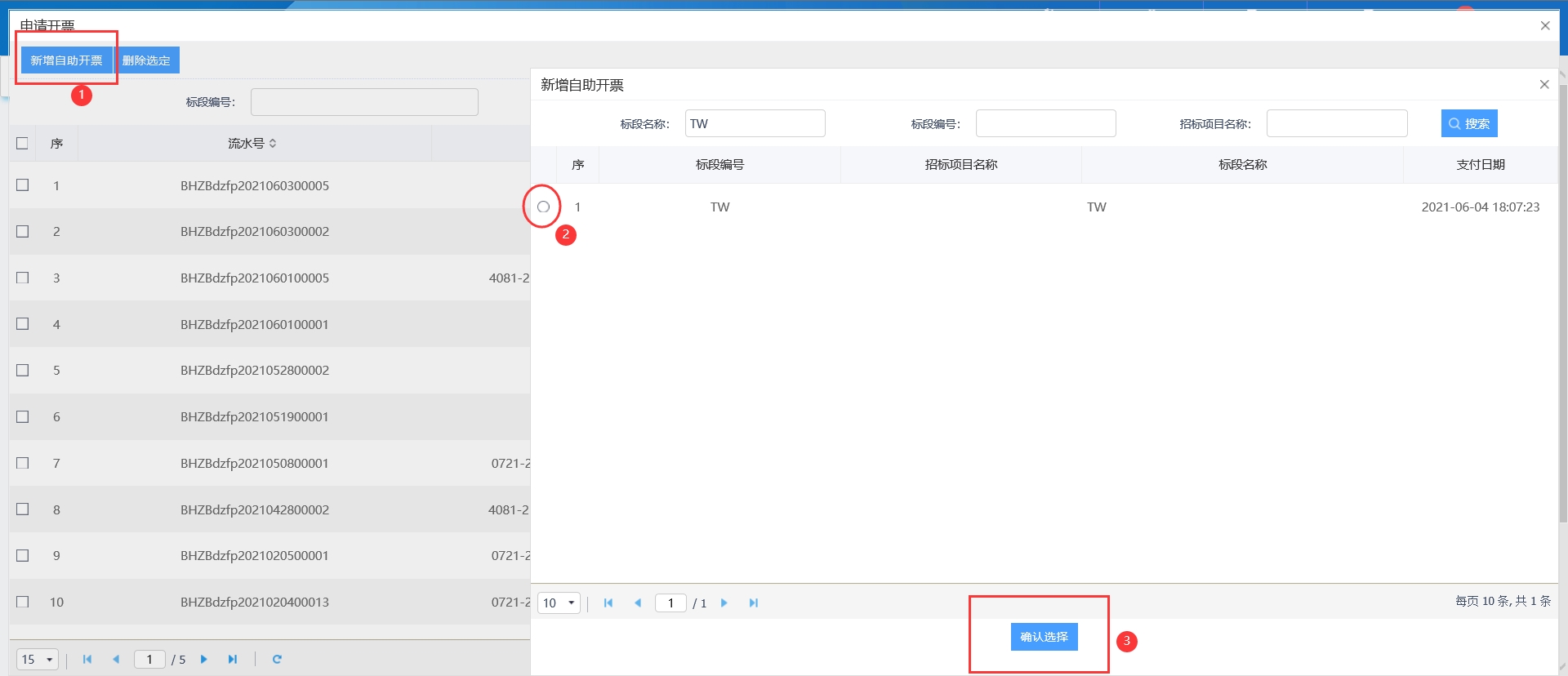 ② 新增自主开票—选择开票内容—确认选择进入开票页面