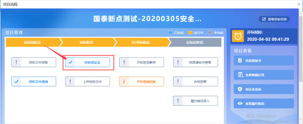 【我的项目】-【项目流程】-【投标保证金】模块和查看项目保证金子账号。按招标文件中规定的方式和金额缴纳保证金。