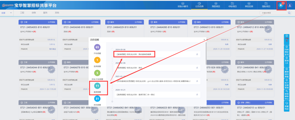 1.登录系统后,点击消息提醒,选择邀请提醒,可看到邀请消息提示,点击消息进入邀请书确认页面。