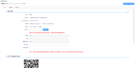 2 进入CA续签申请页面, 点击 “新增CA申请”打开CA续签申请编辑界面,如图: