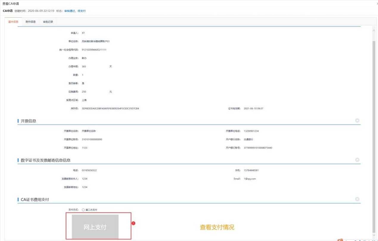 5 审核通过后,点击“网上支付”调转中金平台,支持企业/个人网银,微信/支付宝扫码支付。